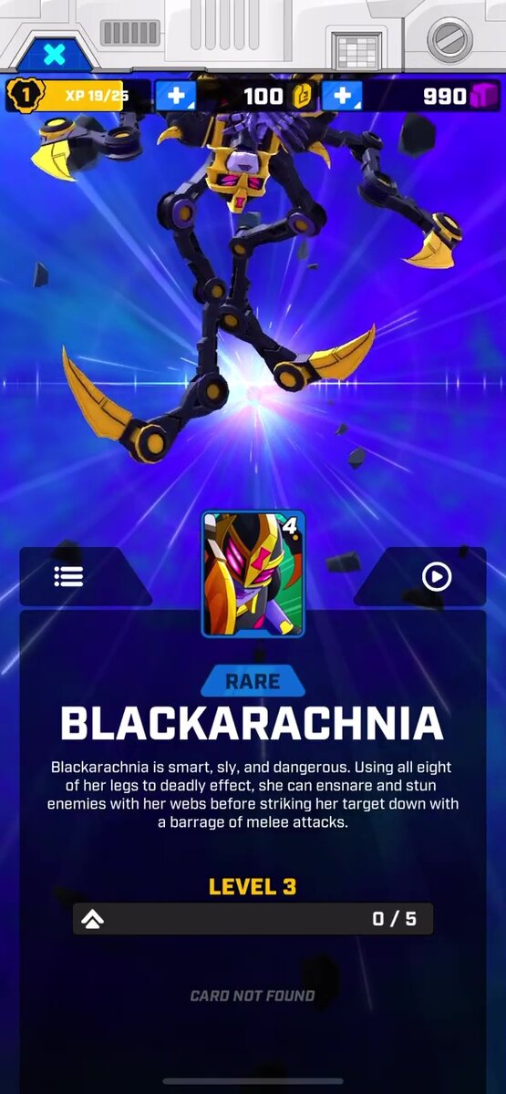 Хотя в прошлый раз статья получилась больше обычного, часть имевшейся информации мы всё же упустили. После того, как игра "Transformers Tactical Arena" получила глобальный релиз за пределами Apple Arcade, у неё появился официальный канал на Youtube, где даже прошла первая трансляция с разработчиками. Особых новостей мы, правда, не получили, но официальный Discord-сервер приложения достаточно мал, так что шанс быть услышанным там весьма хорош. Также следует отметить, что в ближайшее время релиз для пользователей Android не планируется, но зато известно, что Хасбро не выставляло команде особых пожеланий по набору используемых персонажей, и в будущем там может появиться практически кто угодно (за исключением, вероятно, героев фильмов, требующих отдельной лицензии). Вместе с релизом в игре появились 4 новых карточки: Блекарахния, Ринокс, Джетфайр и Гальватрон (кадров с изображениями и описаниями двух последних у нас ещё нет). Арена, на которой ввели отсутствующие карточки, также сменила на