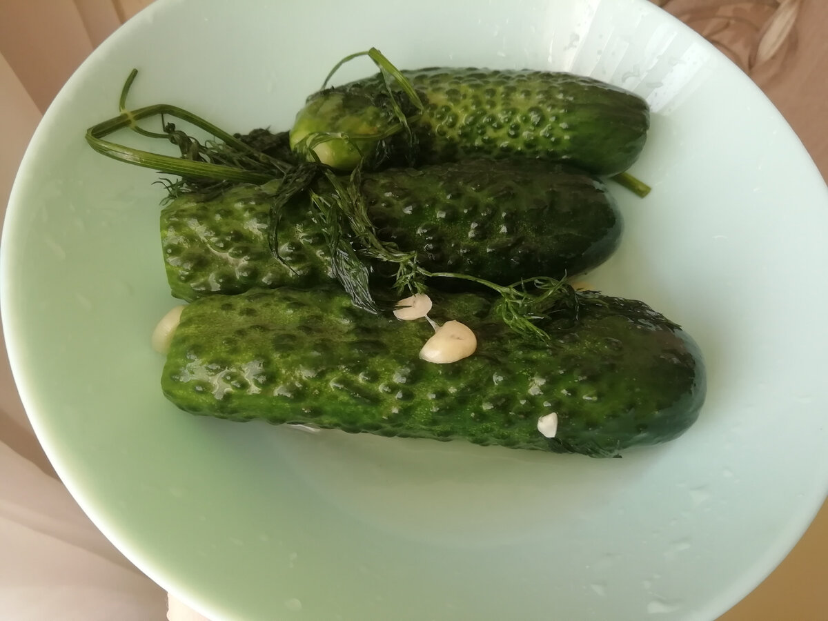 Вкусные, с ароматом укропа и чеснока. А самое главное, что кушать можно уже через несколько часов. Чем теплее на улице, тем быстрее они готовятся. В жару достаточно 2-3 часа. Не надо использовать банку и готовить рассол. Этот рецепт давно привезли родители из путешествия в Севастополь. Дорога на поезде длинная, одно из развлечений- короткие остановки с возможностью выйти из вагона. Вот на одной из таких остановок они увидели бабушку с пакетом, у которой бойко шла торговля. Бабушка продавала очень ароматные свежепросоленые огурчики и охотно делилась рецептом. Для приготовления свежепросоленые огурчиков нам необходимо: И ещё нам нужен обычный пакет, лучше плотный, чтобы не промок и жаркая погода для быстроты приготовления. Готовим: Я люблю именно малосольные, поэтому, после первой дегустации вынимаю из рассола и убираю в холодильник, чтобы зафиксировать вкус. А если любите более насыщенный вкус, то придётся подождать ещё немного. А вы любите свежепросоленые огурчики? Есть любимый