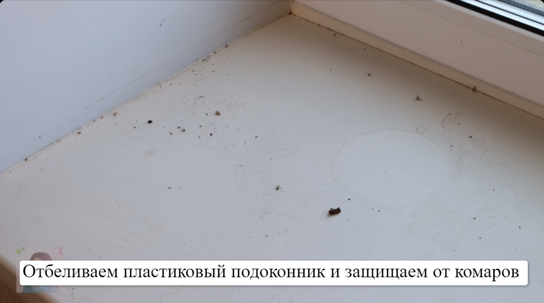 Приветствую, вы на канале “Марина Жукова” — канале о бюджетной чистоте и порядке. Статья об актуальной летней теме. Покажу, как можно легко отмыть и отбелить подоконник, защитить его от пыли летом. Благодаря моему совету мыть окна будете гораздо реже. Самое главное защитить окно от проникновения мух, насекомых, комаров и мошек. На подоконнике много мертвых комаров и мошек. Это все предстоит убрать! Этап №1 уберите крупную грязь. Уберите всю крупную, поверхностную грязь тряпкой и водой. У меня фольгированная тряпка. С одной стороны тряпка жесткая, с другой мягкая. Просто уберите грязь тряпкой, без добавления моющих средств. Для отбеливания нам потребуются средства для чистки сантехники. Подойдет абсолютно любое. У меня огромное разнообразие отбеливающих средств. Возьмите одно на выбор: Утенок. (https://ya.cc/m/z29qt2h) Мне нравится черный утенок. В состав черного Утенка входит щавелевая кислота – она хорошо будет разъедать черные круги из-под цветочных горшков. Тем не менее, он щадящий