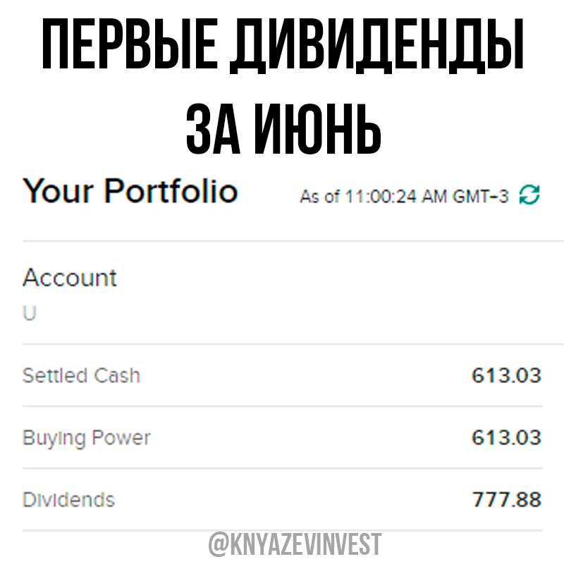 Вот, например, уже начисленные дивиденды за июнь: 777$ (красиво как!)😊