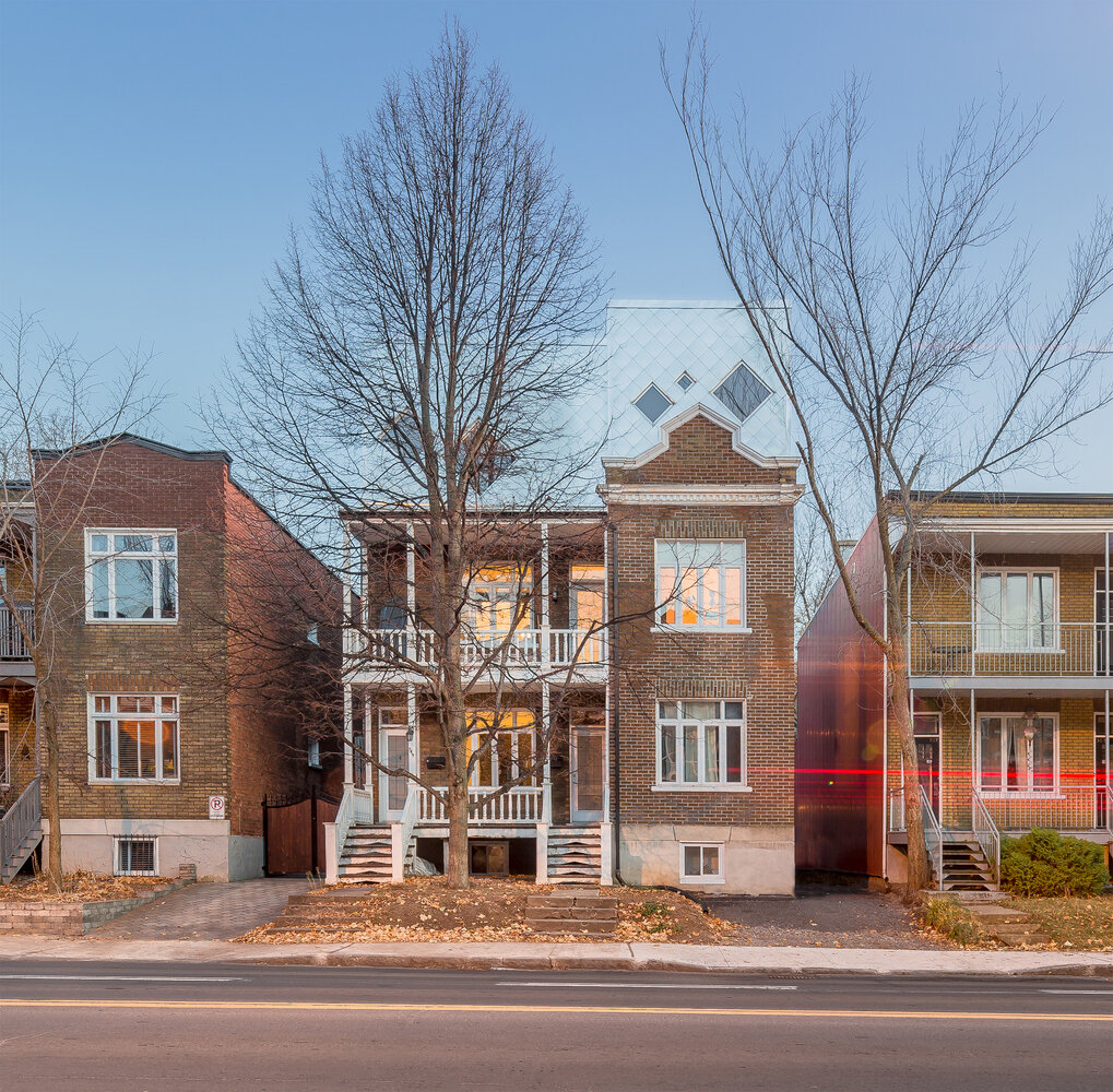 Двухуровневый дом расположен в районе Монкальм, известном своим городским парком Фредерика Тодда и национальным художественным музеем ОМА. Один из братьев поручил eba спроектировать двухэтажную квартиру с новой частной террасой и прямым выходом на общий задний двор. Требования клиента включали в себя преобразование существующего втор
