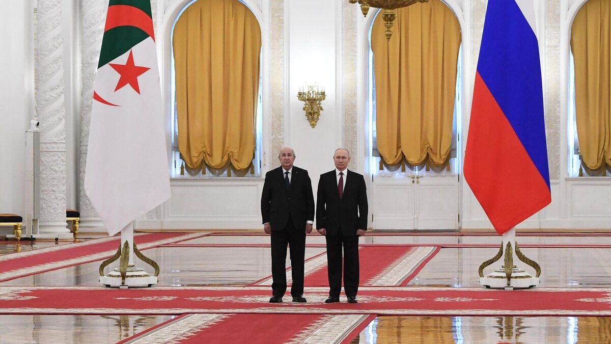 Вчера состоялась официальная встреча в Георгиевском зале Большого Кремлёвского дворца президента России Владимира Путина и президента Алжира Абдельмадджида Теббуна. Два президента подписали Декларацию об углубленном стратегическом партнерстве двух стран по итогам встречи и ряд значимых документов. Во время расширенного заседания обсуждались вопросы развития стратегического российско-алжирского сотрудничества в различных областях, а также актуальные темы международной повестки дня, включая положение дел в регионе Ближнего Востока и Северной Африки. Владимир Путин откровенно заметил: «Алжир является для нас ключевым партнером в арабском мире и в Африке». Известно то, что Алжир входит в тройку ведущих торговых партнёров России на Африканском континенте.