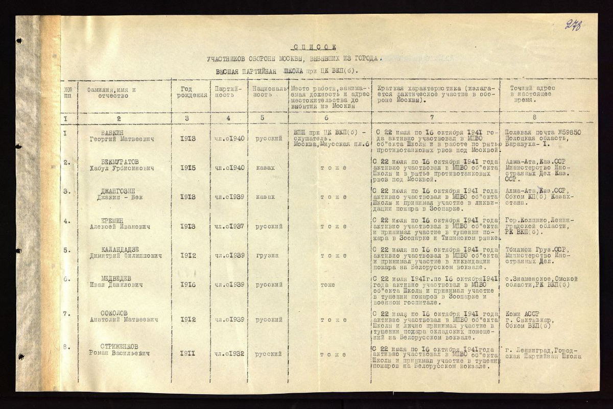 В Российском государственном социальном университете хранятся уникальные исторические документы. И сегодня мы публикуем самые интересные для вас! Валерий Фальков, Министр науки и высшего образования РФ отметил, что «Научный полк» за два года объединил сотни тысяч неравнодушных людей: «В этом году в акции участвуют все университеты и научные организации нашей страны. Они рассказывают о студентах, преподавателях и научных работниках, которые с 1941 по 1945 годы на фронте и в тылу приближали Победу. Каждое такое повествование — частичка летописи о Великой Отечественной войне, которую мы должны бережно хранить и передавать следующим поколениям, чтобы ни у кого и никогда не возникало желания переписать историю и пересмотреть роль нашей страны в борьбе с фашизмом». Наш университет активно участвует в акции! В рамках «Научного полка РГСУ» мы публикуем документы о награждении слушателей Высшей партийной школы при ЦК ВКП(б), медалями «За оборону Москвы». Эти бумаги — драгоценная память о заслуг