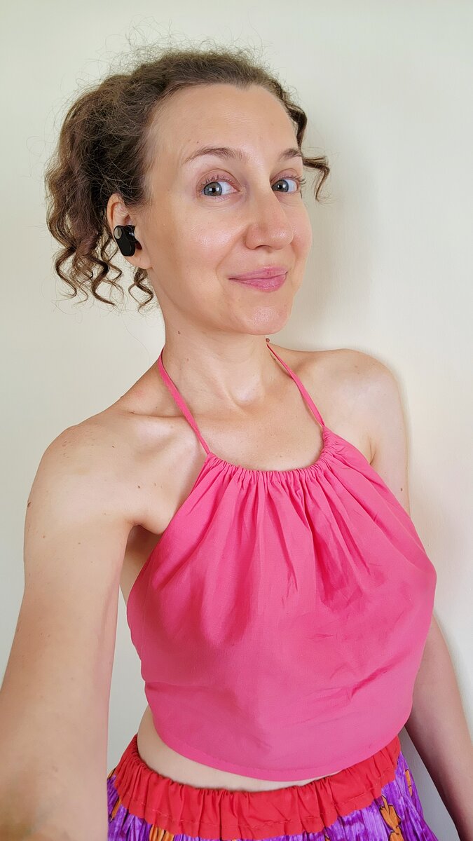 Опять не устояла перед очарованием индийского хлопка – настолько чистого и прекрасного! Решила сшить легенький топик, идеальный для жаркого летнего дня дома. Для этого понадобятся всего две мерки: примерно 2/3 обхвата под грудью. И вторая мерка – высота топика, от начала груди до начала живота. Поскольку я нахожусь в полевых условиях, то сшивать топик я буду вручную, без помощи швейной машинки. Я использовать шов "назад иголку", а можно и другой удобный для вас. Теперь вырезаю прямоугольник из ткани, его длина равна 2/3 обхвата под грудью, а ширина – высоте топика. Также раскраиваю ткань на полоски для завязок. Ширина каждой полоски примерно 2 см, а длина подходит под мои параметры. Учитывая мой размер 42, длина завязок будет небольшой (одна полоска длиной 75 см, две полоски длиной по 35 см) Детали готовы, теперь приступаю к шитью. Загибаю и подшиваю края боковых сторон топика, делая двойной загиб в полсантиметра. Затем подшиваю низ, используя такой же способ. Следующим шагом подш