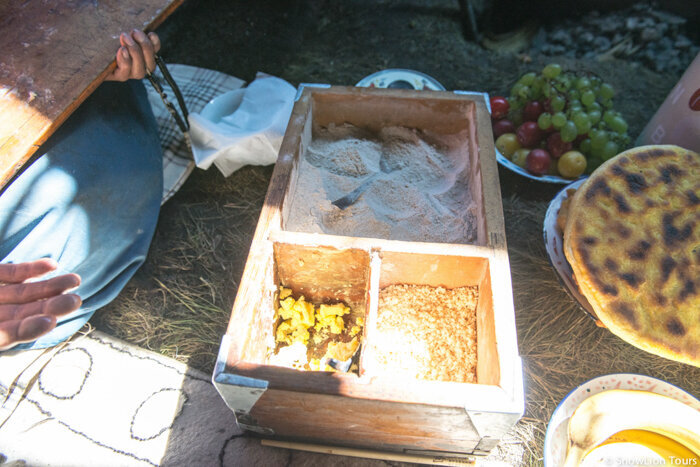 У Сино-тибетских народов традиционно питаются сидя на низких стульях или на полу вокруг стола. Еда подается в общие блюда, которые ставятся на центр стола, и каждый гость берет еду ложкой или палочками из общего блюда. Важно помнить, что главное блюдо должно быть расположено в центре стола, а блюда с мясом и рыбой должны быть размещены на отдельных тарелках. Также у Сино-тибетских народов принято угощать гостей чаем или другими напитками, а после еды предлагается фрукты или сладости. Важно помнить, что уважение к старшим и гостям является очень важным аспектом традиционной культуры Сино-тибетских народов.
