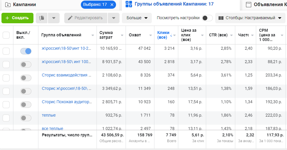Данный кейс наглядный пример того, как необходимо правильно работать со своей аудиторией. Клиент: Бухгалтер аутсорсер Задача: Подписчики в инстаграм Продажа мастер классов через инстаграм Что мы сделали: Цель: трафик с оптимизацией под клик В результате 7 749 переход Подписчики: 3225 Стоимость подписчика: 13,5 р Сумма затрат: 43 506р Продаж с блога на сумму 74000 Что важно? Конверсия в подписку достаточно высокая благодаря попаданию в аудиторию Рекламному посылу, который отражает боль аудитории Грамотное взаимодействие с новой аудиторией