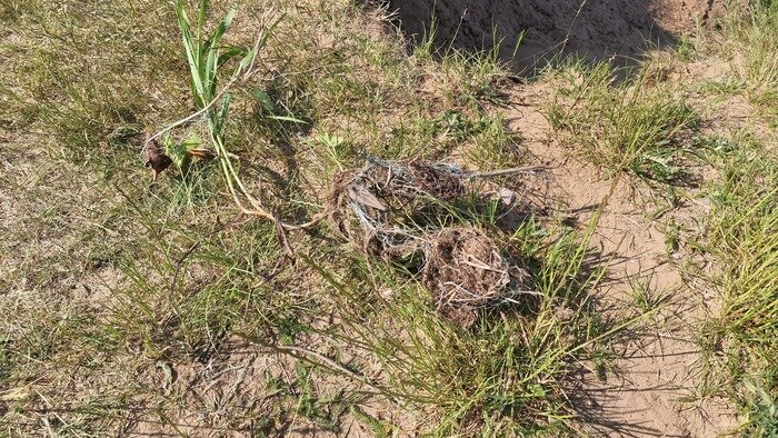 Несчастная береговушка запуталась в брошенной на берегу мочалке из плетёнки, прямо в паре метров от своей норки. Неужели трудно донести хотя бы до костра и сжечь свой опасный мусор? Хотя вообще-то при выезде с берега стоит мусорный бак, довезти пакет с мусором до него не должно быть проблемой.