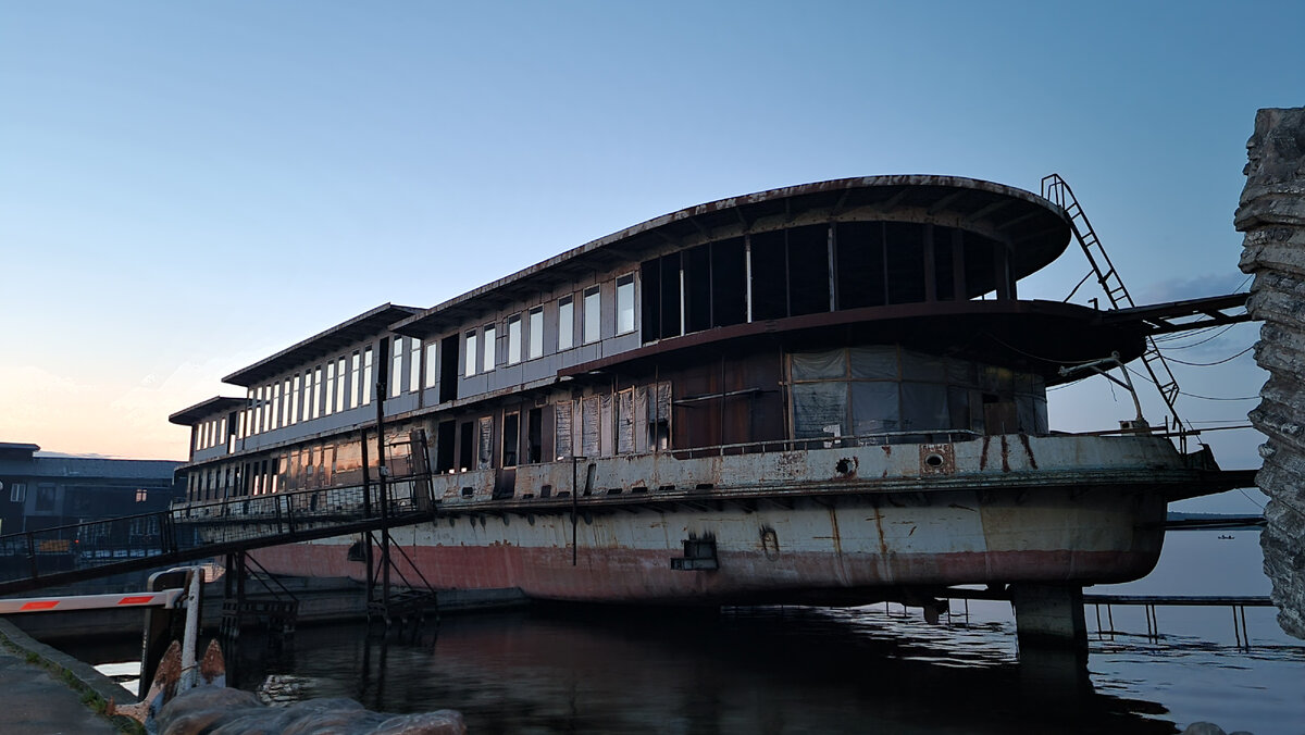 Вчера заехали на Клязьминское водохранилище, чтобы полюбоваться закатом, и увидели огромный ржавый теплоход, покоящийся на вечной стоянке возле одного из причалов. Кое-где в нём ещё даже стёкла сохранились, но выглядит он довольно зловеще. Сперва у меня появилась мысль, что его можно было бы использовать для какой-нибудь трешовой фотосессии, но всё же пробраться на него я бы не рискнул. Слишком небезопасное это будет предприятие... Знакомьтесь - теплоход "Павел Юдин" и то, что от него сейчас осталось. Построен был в 1963 году в Будапеште, до 1977 года назывался «Днестр». В 1993 году был списан. Было разобрано машинное отделение и внутренние помещения, после чего корпус судна увезен в Москву. Весной 2002 году корпус судна был отбуксирован на Клязьминское водохранилище Московской области, где и стоит по сей день, пугая приезжающих сюда людей своим мрачным видом. Когда я смотрю на него, мне вспоминается сериал "Озарк". Из него могло бы получиться красивое и необычное казино. Или, на худо