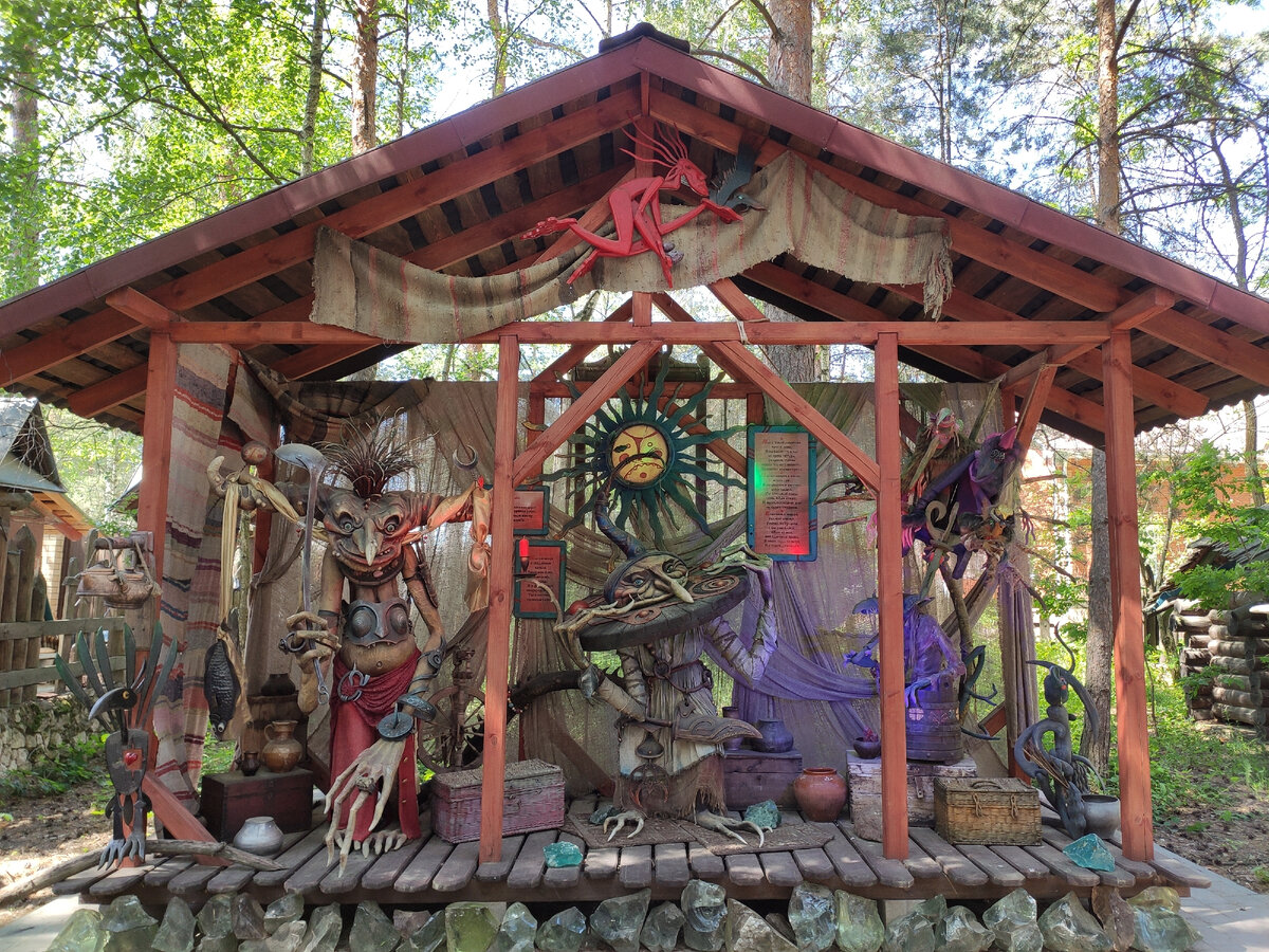 Далее мы замечаем рыжеволосую девушку с ушками, сажающую цветы на одной из клумб. Оказалось, что это Дарья, хозяйка этого королевства (супруга Андрея Трубина). Кстати, это она нам подсказала заглянуть в домик Бабы-Яги, а то мы прошли его мимо.