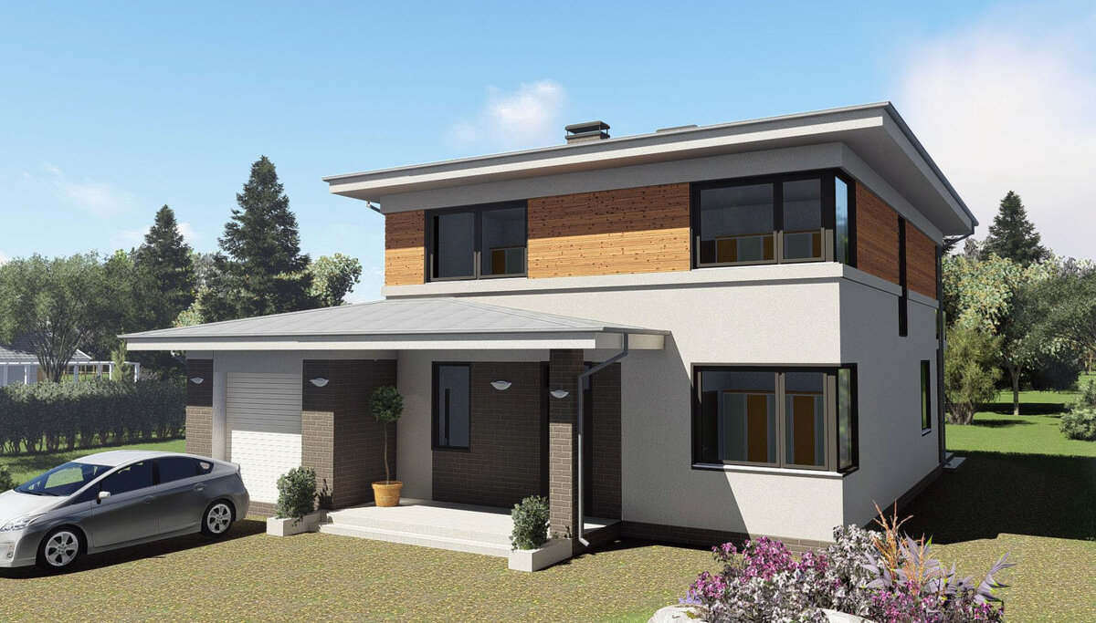 На первом этаже дома разместились все необходимые помещения для комфортной жизни - большая кухня-гостиная с выходом на террасу, санузел, постирочная, котельная под газ, а также кабинет. Еще в доме имеется гараж, из которого можно зайти в дом не выхода на улицу (через котельную), также в гараже есть помещение свободного назначения, например, под мастерскую. На втором этаже дома разместились три спальни и санузел, одна из спален является мастер спальней, в ней расположен свой туалет и гардеробная. Материалом стен в доме служит теплая керамика толщиной 380мм, 250 мм - внутренняя несущие, 120мм - перегородки. Кровля в доме четырехскатная с покрытием мягкой черепицей. Внешняя отделка в доме - штукатурка и дерево (планкен), а также панели под кирпич на гараже. На террасе и крыльце предусмотрен навес. - Общая площадь - 200 м2