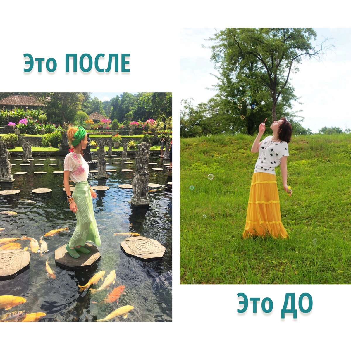 На этой фотографии справа я ещё немного схуднула в тот момент, хотя всё равно старалась поворачиваться к камере боком, чтобы не было видно, какая у меня фигура, а слева - спустя несколько лет, когда я уже поменяла свой образ жизни.