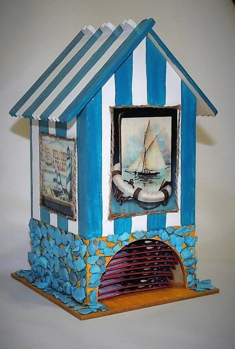 Чем ближе отпуск, тем сильнее бушует фантазия, тем ярче снятся сны с оттенками бирюзы, а воздух по ночам пахнет морем... Друзья, приглашаю вас прогуляться по галерее моих прошлых работ на тему моря, их не так много, но настроение создать получится))). С каким-то изделиями вы уже знакомы, а что-то я нашла в архиве совсем старых фото. Все они созданы в моих привычных техниках декупажа и смешанного декора. Приступим))). Раньше я очень любила декорировать чайные домики и вот один из них: Использовала акриловые краски, распечатки, декоративные камешки. А эту довольно объемную бутылку с домашней настойкой делала в подарок для хорошего друга: На следующей бутылочке тема немного расширяется до хобби рыбалки: Вот бутылочка самая молодая, 2023 года: Одна из любимых работ - шкатулка "Венеция": Наверное, самая масштабная на сегодняшний момент ключница: И в завершение - самые-самые первые робкие и простые изделия. Несмотря на то, что здесь откровенно видны ошибки и примитив, но я отношусь к ним с