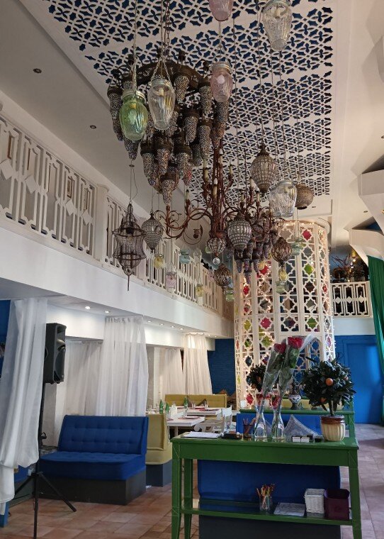 Пятница! Сегодня про вкусное. И красивое :) Ужин в Волгограде, в первый день июньского отпуска Поселились, вышли на улицу и стали искать, где поесть. А это суббота! Заскочили в одно место на проспекте Ленина — у нас сейчас банкет, так что будете ждать долго (с) а мы не хотим ждать! Хорошо, рядом нагуглился (впрочем, Дима знал о нем даже в 2017 году, ему рекомендовали) типа пафосный и дорогущий «Шафран». Расположен он удачно — на площади Ленина, рядом Дом Павлова и памятник детям Сталинграда, самый центр. Летняя веранда была вся занята, но мы и хотели внутрь Начинаем погружаться в Восток загодя :) Я как сорока, люблю всякое такое И такое тоже! Кстати, у них там тоже была свадьба! Но помещение огромное, так что мы их практически и не слышали (но тамада весёлая, и конкурсы хорошие!) Вот эта наклейка меня заинтересовала Кухня, понятно, с кавказским уклоном. Люля из говядины Мой сом на мангале Варя заказала салат с курицей Это такая подача окрошки 0_0 Горги одобряет! Место, кстати, отличное