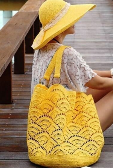 Летом в основном все женщины ходят в свободной одежде из натуральных материалов : сарафаны, платья, длинные юбки, джинсы и футболки. На ногах тоже свободная обувь, в основном шлепки и босоножки. К такому наряду обычная строгая сумка, не подойдет, надо что-то тоже свободное и натуральное. Как вариант подойдет вязаная сумка, тем более сейчас мода на вязаные авоськи. Сделала подборку интересных сумок вязаных крючком. Раньше в магазин ходили с сетками, сейчас сумки сетки очень популярны.