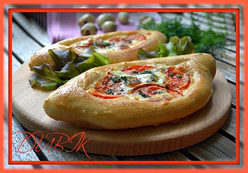 Пиде (pide) - замечательная турецкая выпечка, этакая лепешка с различными начинками. Эти лепешки немного похожи на пиццу, но оригинальная форма пиде выдает национальный турецкий колорит. Они представляют собой лодочки из теста, внутри которых скрывается сытная начинка из мясного фарша, зелени и овощей или сыра. Ингредиенты тесто: начинка: Способ приготовления Смешать муки с солью. Дрожжи смешать с сахаром и теплой водой. Соединить муку и опару, хорошо вымесив тесто. Положить тесто в глубокую посуду, накрыв пленкой и убрать в холодильник на 8-10 часов. Тесто разделить на 4 части. Каждую часть раскатать в тонкий овальный пласт. Пласт обильно посыпать тертым сыром, включая края. На середину выложить тонкие ломтики помидора. Края теста закрутить навстречу друг другу, формируя " лодочки ". В середину разбить яйцо, посолить и поперчить по вкусу. Тесто смазать желтком. Запечь в духовке ( 200 ) до готовности. Кушать теплой, посыпав измельченной зеленью. ПРИЯТНОГО АППЕТИТА!!!