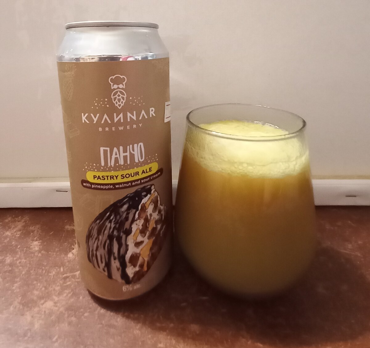 Всем пятничного тортика. Сегодня у меня в меню "Панчо" - sour ale от КУЛИНАR BREWERY. Я конечно очень, очень, прям вот очень давно не ел торт под кодовым названием "Панчо", но что-то кажется мне, что он был более ананасовым и менее ореховым, ну и более сладким с легкой ананасовой кислинкой. Сходство конечно неоспоримо, но данный пивас более кисл, и скорее орехов, нежели ананасов. Но в целом зачет. Пены мало, но она довольно плотная и стойкая. Вкус насыщенный и приятный. Цвет ананасовый и с мякотью. На свои 440 деревянных не тянет, но если найти рублёв за 300, то очень даже... ABV - 6%, OG - 14.98%, IBU - 0% Где-то на 4.45 пив из 5 не пив