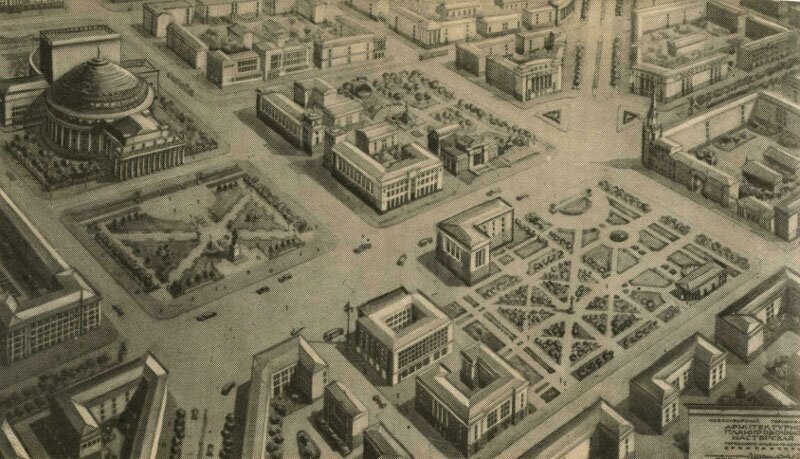 Сегодня в рамках акции #НаучныйПолк мы расскажем о проекте реконструкции центра Новосибирска, начатого во время Великой Отечественной войны. Еще с довоенных времен архитекторами и градостроителями отмечалась неравномерная застройка города. Сооружения многоэтажных домов сосредоточивались в правобережной части — в соцгороде завода им. В.П.Чкалова, а в левобережье — в соцгороде заводов «Сибсельмаша». Здания были рассеяны по центральным районам и главным улицам города. Авторы стремились выделить свои проекты в ряду других, что создавало архитектурную пестроту будущей столицы Сибири. Сооружения таких жилых зданий города — это результат создания в кратчайшие сроки «фасадов» главных улиц-магистралей. Новые пятиэтажные жилые дома размещались беспланово, по временно разработанным схемам, а не по проектам детальных планировок города, которых не было. Отсутствовал при этом и генеральный план Новосибирска. Первые шаги к созданию генерального плана были сделаны в последние месяцы войны. Уже к концу
