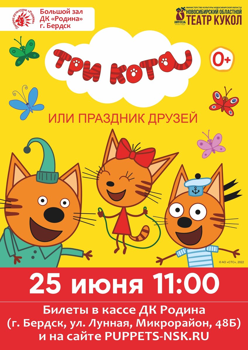 Это история из жизни друзей - трёх любознательных котят — Компота, его братика Коржика и их сестрёнки Карамельки. В их большой и дружной семье жизнь никогда не стоит на месте, она насыщена событиями! История о том, как самая обычная прогулка по лесу может стать настоящим приключением, подарить новые встречи и новых друзей. В спектакле котята вместе с маленькими зрителями подружатся с Ёжиком, Сорокой и тётей Пчелой! Продолжительность: 30 мин МАУ «Дворец культуры «Родина» г. Бердск, ул. Микрорайон, 48Б Сайт: https://rodinaberdsk.ru ВК: https://vk.com/dkrodina.berdsk ОК: https://ok.ru/group/70000001492132 КУПИТЬ БИЛЕТ ОНЛАЙН: https://quicktickets.ru/berdsk-dk-rodina/s47 0+ Реклама Источник: сайт Бердск-Онлайн
