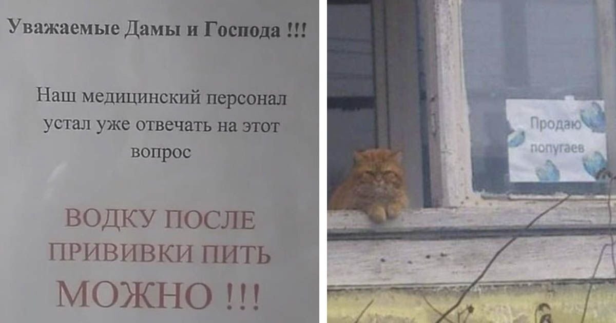 Иногда мы идем на работу по привычному, уже надоевшему маршруту, настроение упадет до нуля или даже еще хуже, мы глядим под ноги - и жизнь не кажется приятной. Вам знакома эта ситуация? Однако, решение от такого плохого настроения простое: просто посмотрите вокруг. Практически на каждом шагу вас ждет что-то интересное, главное - научиться это видеть. Например, забавные объявления, написанные остряками, которые не стесняются выражать свое мнение. Как только вы увидите что-то подобное - на вашем лице появится улыбка, и жизнь заиграет новыми яркими красками. Держите порцию фотопозитива! Медперсонал и крик его души Видимо, кто-то уже на пушистого позарился Но название все-таки настораживает... Зарабатывать всем надо, вискас сам себя не купит Случай в провинции Почему-то сразу своим стать захотелось А как это - выход в шляпу? Рискованно, скорее всего, никто кнопку больше и не нажмет А ведь все написанное - правда Весеннее обострение, иначе это нечем объяснить Настораживает как-то такая