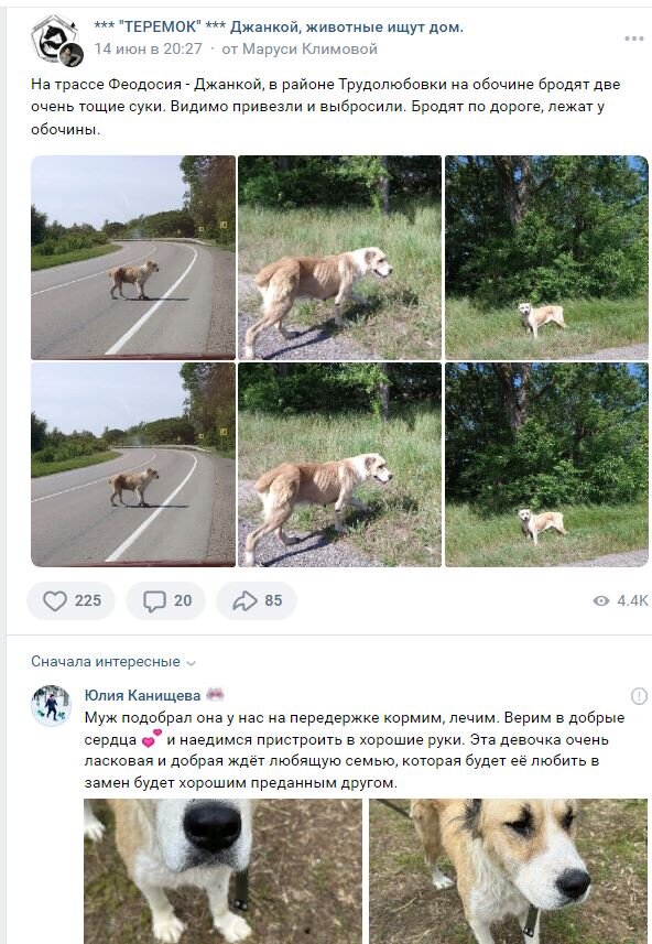 Как и обещала, добавила в сообщество фото тех собак, которых повстречали на трассе. Это всё, что я могла сделать. Возможно, собаке на фото повезёт. Как знать. Я не сторонник приютов и всего такого прочего. Собаки тысячелетия жили без вмешательства человека и проживут и впредь. Конечно, есть собаки выброшенные, беспонтовые и бесполезные и сами они не выживут. Если находятся люди, которые могут их приютить - хорошо. Но мне кажется, таких не очень много. Ведь проще писать жалостливые посты и собирать на приюты деньги. Впрочем, мне эта тема не интересна, это не моё. У меня достаточно своих животных. Кажется как то я рассказывала одну историю из нашей жизни, но расскажу ещё раз: Там, в деревне, где мы жили раньше, мы выгуливали наших собак - больших - за деревней. И вот в сумерках уже останавливается какая то машина и потом уезжает. Машина не из нашей деревни, в деревню не заезжает. Уехала. А мы тем временем потихоньку идём в том направлении. Сидит собачка, небольшая, со спаниеля примерно.
