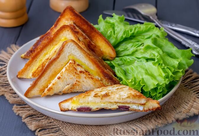 Рецепт не требует больших кулинарных познаний, с приготовлением блюда справится абсолютно любой. Потребуется только ваши 20 минут. Все что нам понадобится: Готовим Из ломтиков хлеба вырежьте хлебную мякоть, кружки колбасы разрежьте пополам, если у вас большой круг колбасы (например: вареная колбаса) разрежьте его на 4 треугольника. В миску разбейте яйца, добавьте соль и взбейте. Сковороду с маслом разогреть и поместить туда наш хлеб вместе с центральной частью. Жарить хлеб минуты 2 до золотистой корочки. После переворачиваем хлеб и в центр "хлебной рамки" выкладываем колбасу. Жарим минутку, потом сразу же заливаем нашу "хлебную рамку" взбитым яйцом и убавляем огонь до минимума, жарим так 2-3 минуты. Финальная часть - закрываем нашу "хлебную рамку" поджаренным мякишем, поджарим еще минутку. И готово Все просто и не менее вкусно. 20 минут вашего времени. Приятного аппетита :)