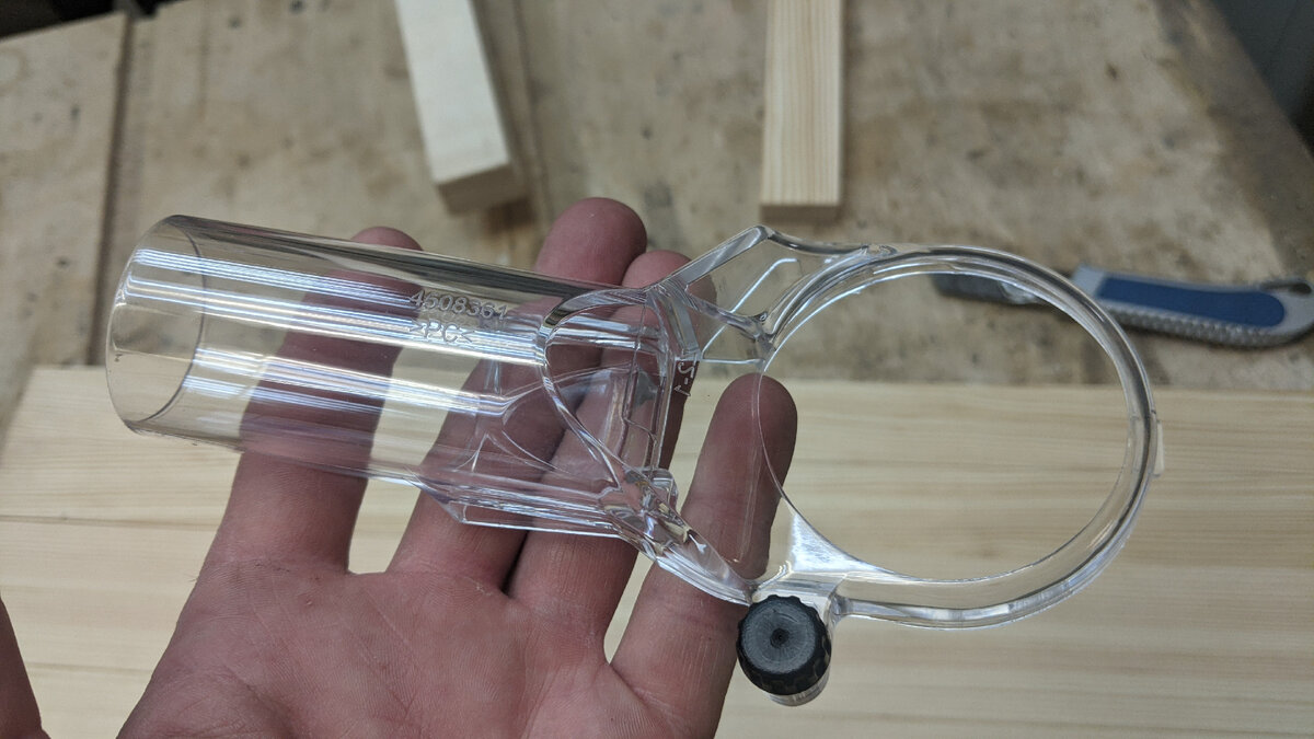 Всем привет! Сегодня расскажу про то, как доработать системой пылеудаления погружную базу китайского трёхбазного кромочного фрезера. О полезности или бесполезности комплектации такого фрезера речь не идёт, возможно расскажу про это в другой статье. Я как-то пару лет обходился без системы пылеудаления, пока мне не понадобилось сделать при помощи данного фрезера глухие пазы. Всё летит в лицо и вверх, работать даже в защитных очках и с респиратором не комфортно. И всё бы ничего, но у меня есть строительный пылесос, которым не воспользоваться просто грех. Для того чтобы оборудовать погружную базу пылеудалением нам понадобится вот такой оригинальный патрубок от фрезера Makita Его номер для заказа 194733-8. У него три точки крепления. Для того чтобы установить его на погружную базу потребуется небольшая доработка третьей точки крепления. Вот её вид до доработки И вот такая она должна стать после Суть в том, что установочное отверстие не прямоугольной формы, по этому без подпиливания напильни