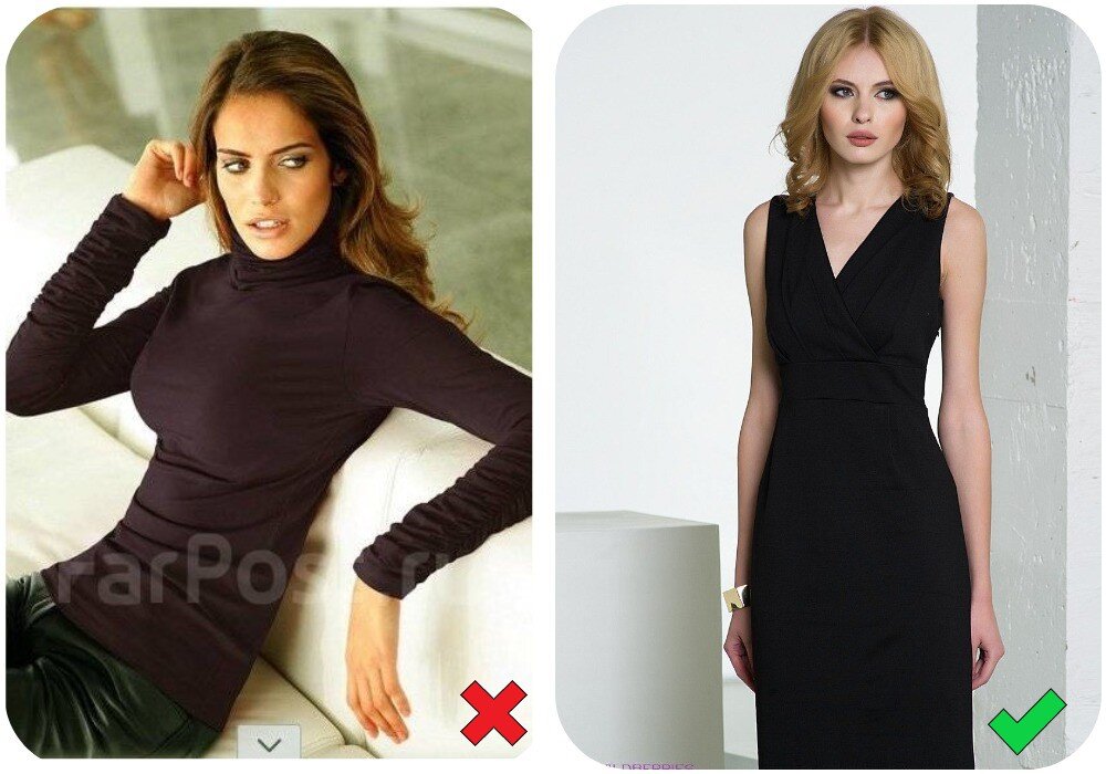 - Шея и область декольте. Тут пока особых проблем нет - шея не сильно морщинистая, кожа в области декольте гладкая - можно открывать и подчеркивать. Подходит практически любой ворот, который открывает шею и область декольте. Исключение - воротники, закрывающие и обтягивающие шею (стойка, гольф). Некрасиво подчеркивают нижнюю область лица, на которой у меня наметилось обвисание и брыли. Когда был двойной подбородок, вообще было ужасно, сейчас, слава Богу, его нет.