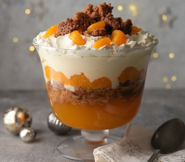Умопомрачительно вкусный десерт из мандаринов, под волшебным кремом из заварного крема и белого шоколада. Восхитительный, нежный и легкий крем в сочетании с освежающим цитрусовым вкусом и ароматом мандарин - это истинное блаженство! Ингредиенты Мандариновое желе Слой пряников Заварной крем из белого шоколада и сборка Украшение Уже в продаже электронная книга в формате pdf по цене 500 рублей. По вопросам приобретения можно обращаться WhatsApp +79287768843 Приготовление Мандариновое желе Слой пряников Заварной крем из белого шоколада и сборка Украшение Совет Trifle - очень любимый английский десерт, который восходит к 1700-м годам. Чтобы придать этому историческому блюду изюминку, мы заменили традиционный бисквит, пропитанный хересом, хрустящим слоем имбирного пряника. Вместе с пикантным мандариновым желе и заварным кремом из белого шоколада этот современный вариант классики может стать новым рождественским фаворитом! Чтобы приготовить более быстрый рецепт, вместо того, чтобы раскрошить