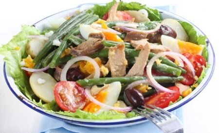 Рыбный салат - это освежающее и питательное блюдо, которое обычно делается с использоанием рыбы, овощей и соусов. Ниже приведен рецепт классического рыбного салата: Ингредиенты: - 300 г свежей копченой рыбы (лосось, треска или форель) - 1 большой огурец, нарезанный тонкими кружками - 1 маленькая красная луковица, нарезанная тонкими полукольцами - 1 маленькая морковь, натертая на терке - 1 столовая ложка свежего укропа, мелко нарезанного - 2 столовые ложки нежирной сметаны или йогурта - Соль и перец по вкусу Инструкции: 1. Нарежьте копченую рыбу на небольшие кусочки и поместите их в большую миску. 2. Добавьте огурцы, лук, морковь и укроп в миску с рыбой. 3. В качестве соуса можно использовать сметану или йогурт. Добавьте соус в миску и хорошо перемешайте все ингредиенты. 4. Посолите и поперчите салат по вашему вкусу. 5. При желании вы можете добавить немного лимонного сока для дополнительной свежести. 6. Перед подачей охладите салат в холодильнике на несколько минут. Вы можете пода