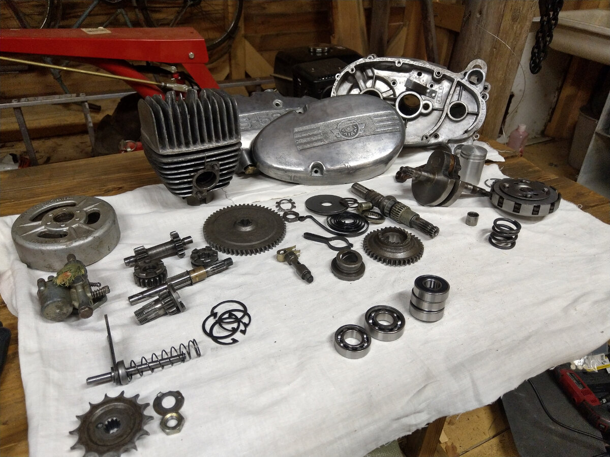 Ну вот, после длинтельных подготовительных работ наконец настает этот знаменательный момент сборки. Детали разложены на рабочем столе, двигатель готовится к сборке. Всегда мечтал сделать выкладку, как делают зарубежные реставрационные каналы. И да, есть что-то в этом) приятное ощущение завершения большого дела. Отполированные крышки блистят в ожидании. Но вернемся на несколько дней назад. Как я уже упоминал в посте про окна, в мопеде маленький цилиндр. В нем все маленькое. В том числе и ребра. Мыть его не пытались последние годы до меня. Поэтому из ребер я выгреб кучу земли с маслом. И их нужно почистить. Главный вопрос как, потому что между ребрами ничего не лезет. Специально для этого были куплены корщетки для бормашинки. Вообще о бормашинке я выпущу отдельный пост, потому что она в данный момент мое самое противоречивое оборудование. Ими удалось подлезть в ребра и наконец-то их почистить. Чистые ребра это всегда хорошо, поскольку эти мопеды имеют тенденцию к перегреву. Даже в и
