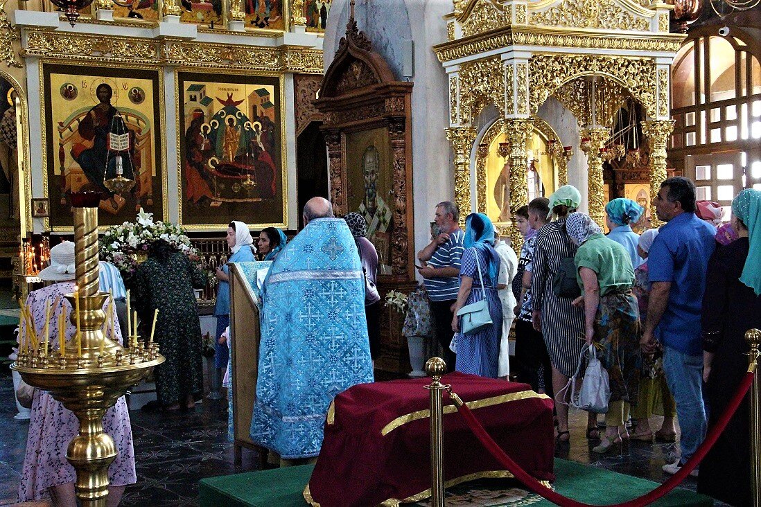 В Успенском соборе Астраханского кремля выставлена мироточивая икона Божией Матери «Умягчение злых сердец», прибывшая в наш город на минувшей неделе. У православных астраханцев осталось всего несколько дней, чтобы воздать молитву перед святыней, хранящейся в подмосковном храме деревни Бачурино. Икона Божией Матери пробудет в Астрахани до 10 утра 1 июля. Перед ней ежедневно совершаются молебны с акафистом. Десятки тысяч верующих приходят в верхний храм Успения Пресвятой Богородицы с 8 утра до 19 часов, чтобы помолится перед чудотворным образом. 24 июня митрополит Астраханский и Камызякский Никон отслужил перед святыней Божественную литургию. Ранее AST-NEWS.ru рассказывал об удивительной истории этого чудотворного образа.
