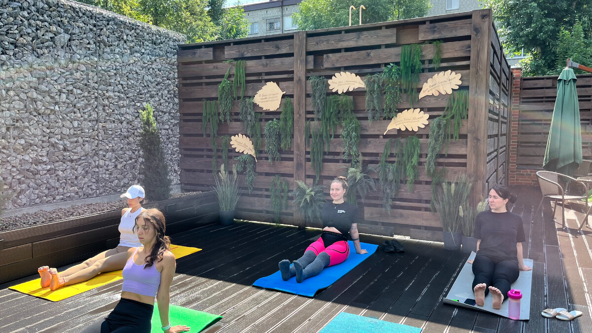 Ранним утром мы с сестрой приехали в «Городские парильни», чтобы опробовать новый спа-формат отдыха: позаниматься йогой, а потом отдохнуть в банном комплексе. Скажу сразу, это отличный вариант для тех, кто хочет максимально расслабиться. Йога Мы быстренько переоделись в раздевалке, взяли коврики и отправились к открытому бассейну, где нас уже ждала инструктор по йоге София Столбова. Начали с дыхательной техники, постепенно погружаясь в упражнения: проработали шею, плечи, туловище, уделили внимание коленям и лодыжкам. Я впервые опробовала интересный способ скрутки с попеременным чередованием ног под углом 90 градусов, перекатываясь с одной стороны на другую. Затем мы постояли в позе воина, треугольника, кошки и «собаки мордой вниз». Инструктор управляла процессом плавно, следила за каждой из нас и просила не торопиться. Завершилось занятие дыхательной гимнастикой и медитацией. Я была по впечатлением: йога проходила у бассейна на свежем воздухе. Звуки воды погружали в состояние расслабл