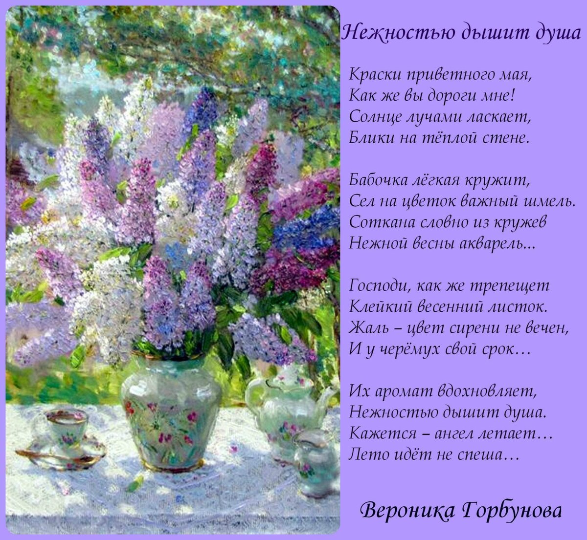 Друзья, познакомьтесь с творчеством Вероники Горбуновой. Она из города Иваново. Вот вам от нее очень нежное стихотворение и открытка.