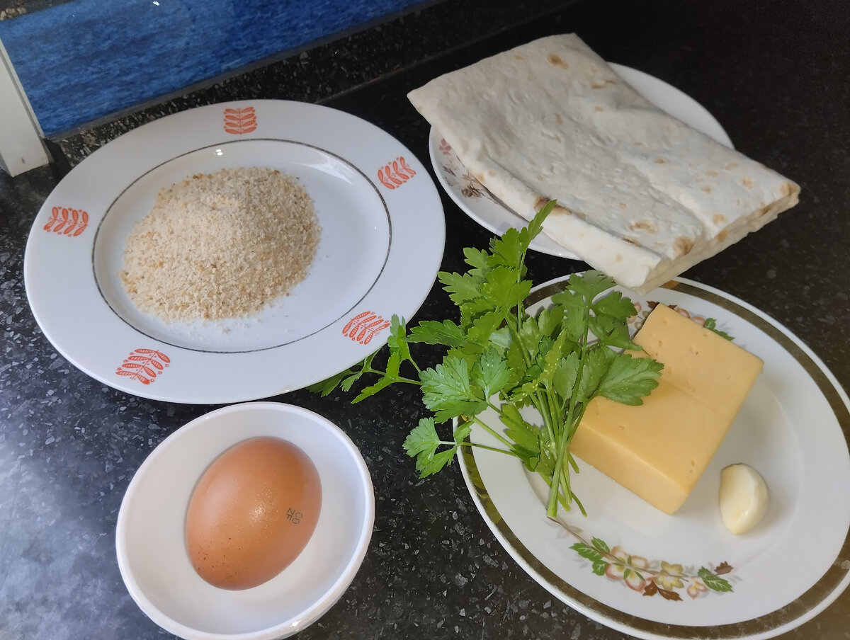 Здравствуйте, дорогие друзья! Предлагаю вашему вниманию рецепт сырных палочек в лаваше. Готовятся быстро, получается вкусно! Я готовила их на завтрак, но отлично подойдут они и на перекус, и в качестве закуски. Для приготовления нам понадобятся следующие ингредиенты: Лаваш - 100 - 150 гр Сыр твёрдый - 100 гр Чеснок 0,5 зубчика ( по желанию) Зелень любая Яйцо - 1 шт Панировочные сухари Масло растительное для жарки Приготовление: Сыр натереть на мелкой терке, добавить к нему измельчённые чеснок и зелень. Перемешать. Лаваш нарезать на полоски шириной примерно 15 см. Выложить начинку на лаваш, отступая от краев по 1 - 2 см. Свернуть в трубочку, обернув начинку 2 раза. Лишнее обрезать. У меня получилось 9 трубочек. Обмакнуть палочки сначала в яйцо, а затем в панировочные сухари. Обжарить с двух сторон в растительном масле, на заранее разогретой сковороде. Выложить на бумажное полотенце, чтоб удалить лишнее масло. Сырные палочки в лаваше готовы! Приятного аппетита!