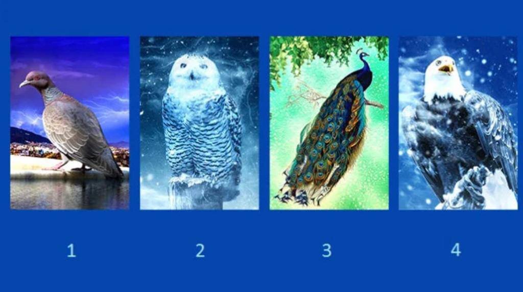 Кого вы выберете? ОТВЕТЫ: Голубь – мир и нежность Если это ваш выбор, у вас очень высокий эмоциональный интеллект. Тот, кто выбирает голубя, является чувствительным, вдумчивым человеком с большим сочувствием, на которого можно положиться в любой ситуации и при любой проблеме. Сова: Логика и интеллект Кто выбирает сову, тот человек с сильным логическим интеллектом, способный решить любую проблему. Этому человеку нравится знать, что происходит вокруг него, он охотно углубляет свои знания, особенно в областях своих интересов. При этом совы пассивны в общении, редко проявляют инициативу, особенно с новыми людьми. Павлин — Впечатлительность и открытость Павлин обладает большим эмоциональным интеллектом — он экспрессивный человек, открытый для других и очень терпимый. Легко увидеть, что у него на душе и что у него на уме. Неудивительно, что он очень активен в плане общения. Павлин не боится заводить новые отношения, с энтузиазмом берется за новые задачи. Орел – мужество и решительность.