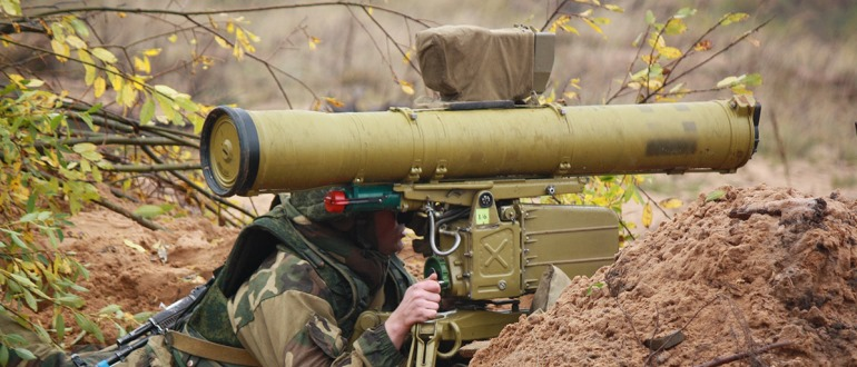 - 9М113М Конкурс — калибр ракеты 135 мм. Дальность стрельбы — 75—4000 м. Бронепробивемость тандемно-кумулятивной БЧ — до 800 мм за ДЗ.