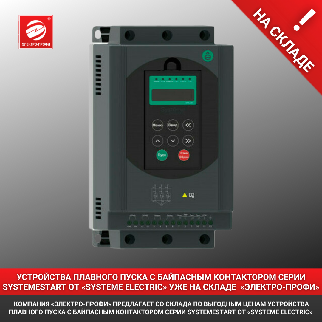 Компания «Электро-Профи» информирует о поступлении на склад устройств плавного пуска со встроенным байпасным контактором серии SystemeStart производства компании «Systeme Electric».