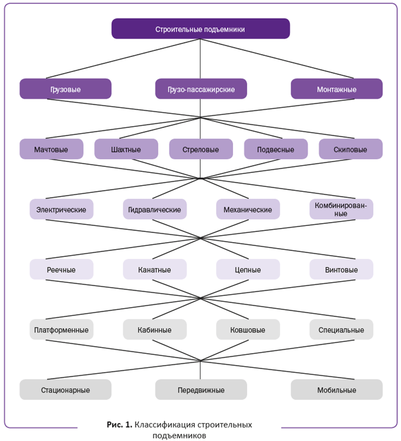 Строительные подъемники классифицируют по следующим признакам (см. рис.1):