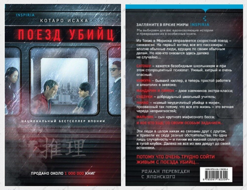 Не прошло и двух лет, как и я добралась до нашумевшего японского триллера "Поезд убийц" второй книги цикла "Наемные убийцы" писателя Котаро Исаки, но у нас выпущенной первой. Ну делают у нас так товарищи из "Inspiria", сначала самый нашумевший роман издают, а потом уже по циклу. Поэтому сначала мы получили "Поезд убийц", а потом уже, в году прошлом, первую книгу цикла "Кузнечик". А между тем двое из "Кузнечика" фигурируют в "Поезде" и автор явно рассчитывает, что читатель с ними уже знаком, поэтому не останавливается на них подробно. Так для меня учитель Судзуки и остался бы загадкой, если бы не прочитала аннотацию к первому роману. Как и Асагао. Поворчала, а теперь о книге.