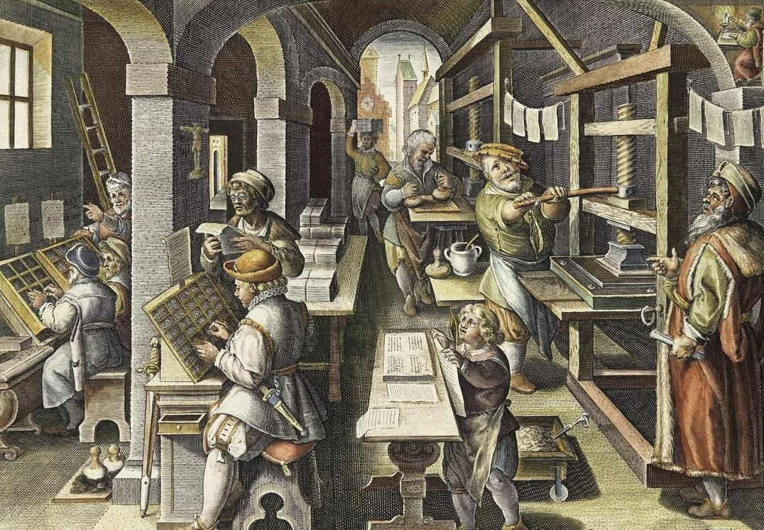 Вокруг типографии уже было Новое время. Пишет свои заметки Спиноза. Джон Локк рассуждает о рационализме. Во французском языке появляется термин «индивидуальность». Но все эти философские изыски не волнуют работников, которые трудятся над громоздким издательским станком. У них своя цеховая атмосфера Средневековья, в к