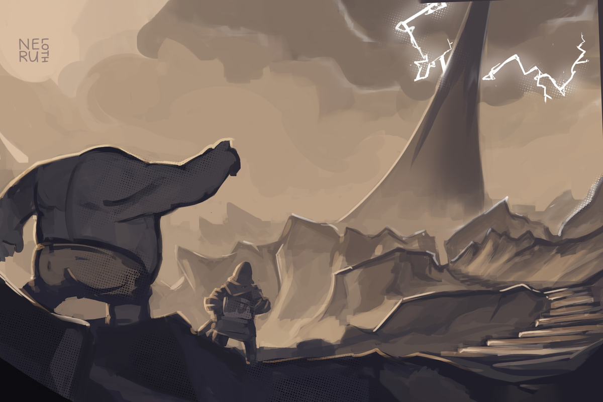 Первый шаг из пещеры! Невероятно! (Конечно очень радостно что наш путь не окончился в ней, но кто знает что будет дальше) - Ура! Наконец-то можно из этой пропахшей огром пещеры и поразмять ноги! Идем Клог, моя на данный момент самая лучшая подтанцовка! Устроим этому колдунишке представление! "- воскликнул ты воодушевленно и бряцая подкованной обувью по камням, вышел из тьмы логова чудовища. Перед тобой открылся невероятный вид с высоты птичьего полета: у подножия гор, вздыбившихся практически вертикально, виднеются луга и зеленеющие массивы лесов. Чем дальше от гор, тем выше вздымались могучие кроны. Озера и речушки приветливо поблескивают в лучах жаркого, ласкающего тебя солнца. Ты чувствуешь его тепло сквозь шлем и доспехи. Приглядевшись, вдалеке, ты увидел голубоватую, почти скрытую низко нависшими облаками, лазурную полосу океана. Ветер обнимал тебя. Казалось, еще чуть-чуть и, расправив руки, ты, словно дракон, сможешь воспарить и устремиться вдаль, наслаждаясь красотой этого мира