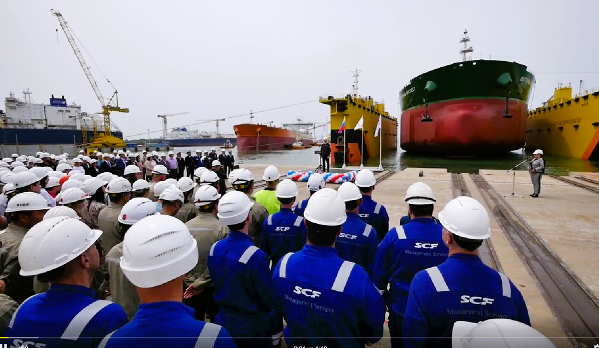 Пятый танкер «Восточный проспект» спустили на воду с помощью транспортно-передаточного дока «Вымпел» для достроечных работ, затем судно ждут ходовые и швартовные испытания.