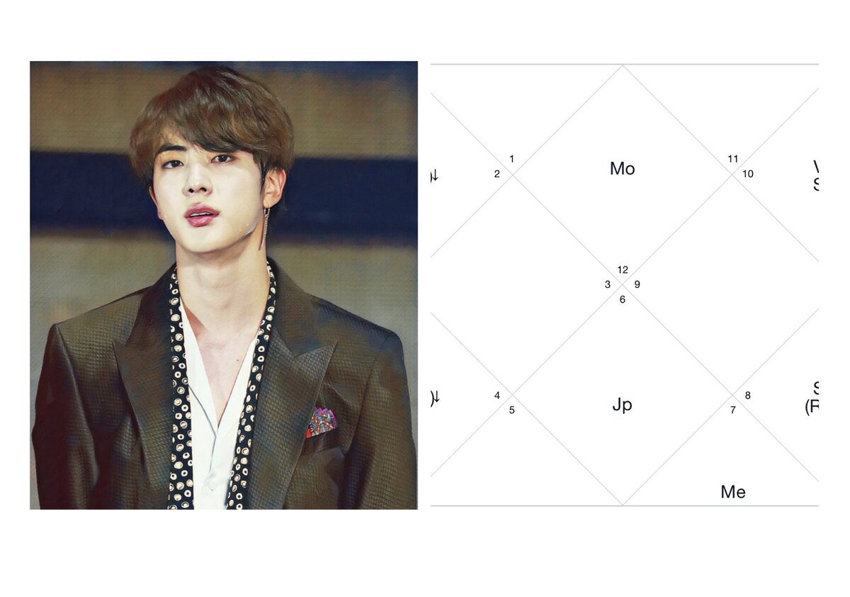 Луна в Рыбах говорит нам о том, что Джин эмоционально глубокий человек. Имеет высокие способности в творчестве ,с таким положением пишут стихи, музыку, песни. Повышена интуиция и чувствительность. Сильно развито сострадание. На тонких вибрациях чувствуют мир.