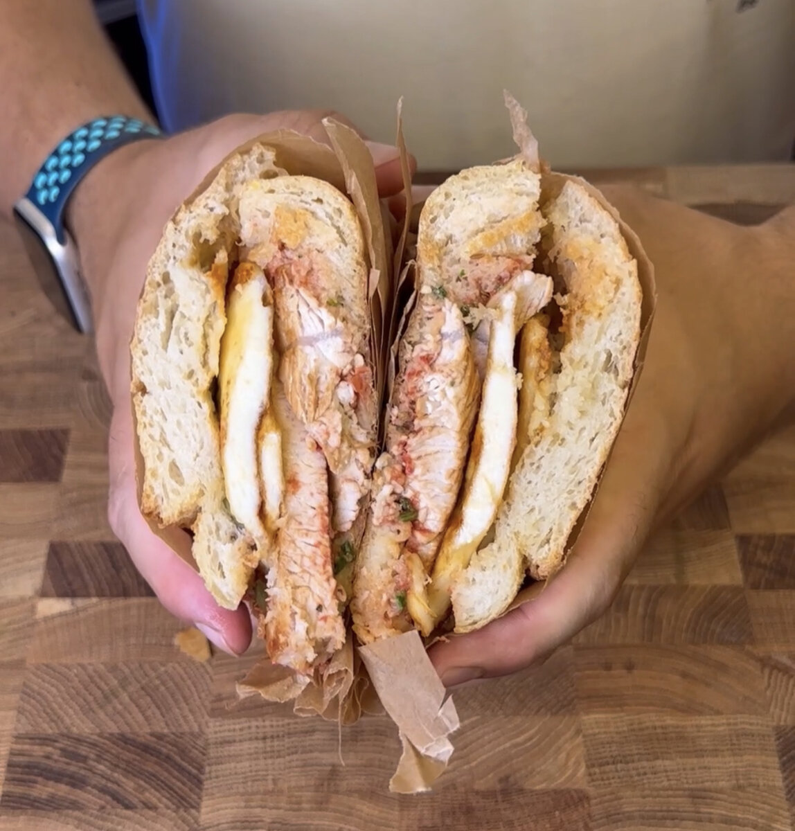 1. Стейки из индейки обжариваем до готовности на сковородке на небольшом количестве растительного масла. Также поступаем с халуми (либо можете, как и я, обжечь сыр горелкой). 2. Показываю самый простой вариант томатной сальсы (не бойтесь, если после приготовления сэндвича ее останется много - чуть ниже расскажу, куда и как ее деть съесть): помидоры, лук и чеснок измельчаем до состояния пюре в блендере. Держим на среднем огне 5 минут со специями и лимонным соком, также добавляем по желанию немного зелени. Кинза подойдет идеально. Даем чуть остыть. 3. Небольшую буханку режем ВДОЛЬ (см.видео), чуть вынимаем мякиш. Сначала сальса, потом нарезанная индейка, халуми и рационально халапеньо. Закрываем второй частью хлеба. 4. По желанию можно поджарить сэндвич на гриле. Итак, что же делать с оставшейся сальсой: Хранится в холодильнике такая сальса хорошо, по крайней мере 3-4 дня пролежит точно, а этого времени уж точно хватит, чтобы опустошить контейнер с этой прекрасной закуской/гарнир