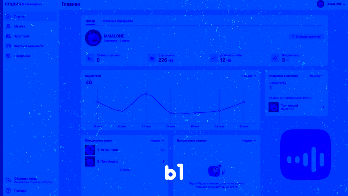 Под новый стриминг VK разработал личный кабинет артиста — «Студию». Этот сервис предоставляет артистам и менеджменту возможность отслеживать статистику активности, демографические данные и географию своей аудитории, отсматривать плейлисты, в которые были добавлены треки, анализировать источники прослушиваний внутри «VK Музыки» и ряд других возможностей, которые мы разберем в этой статье.