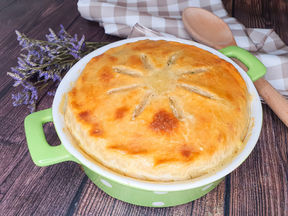 Название пот-пай можно перевести с английского как "пирог в горшке", собственно это он и есть. Пот-пай – это пирог с большим количеством начинки, который готовят либо в одной большой керамической форме, как у меня в сегодняшнем рецепте, либо в маленьких порционных формочках. Такой пирог отлично подойдёт для уютного семейного ужина, хотя лично я готова съесть его в одиночку и ни с кем этой вкуснятиной не делиться. Что касается начинки для такого пирога, то её вполне можно поменять по своему вкусу. Если вы вдруг не любите горошек или шампиньоны, можно готовить пирог без них. А к овощам можно добавить, например, сельдерей или брокколи, которые я не использовала. Для начинки нам понадобится: отварное или запечённое куриное филе, небольшая луковица, 2 морковки, 2 зубчика чеснока, 100 гр шампиньонов, 3 ст.л. замороженного горошка, 250 мл куриного бульона, 100 мл сливок, 4 веточки укропа или петрушки, 1 ст.л. муки, соль, перец, растительное и сливочное масло для жарки. Для теста понадоби
