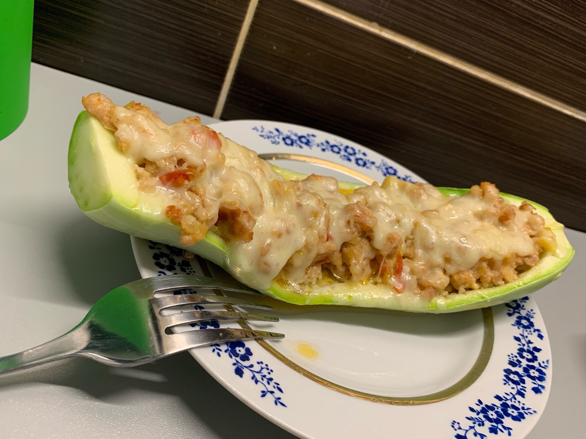Лодочки из кабачков - да, да, именно лодочки. Хотя как по мне у меня получился корабль. В один из грустных вечеров, когда опять возник вопрос "Что приготовить" я прибегнула к лодочкам. Нужно нам всего ничего. Один из главных компонентов это фарш. Обжариваем его на сковородке, фарш должен покрывать дно, больше лучше не нужно. Блюдо без лука вообще не блюдо. Нарезаем лук. Следующим идет помидор для сочности. Можно убирать ингредиенты выше, если у вас аллергия/неприязнь или просто их нет, но с ними все же вкуснее :) Ну и наш второй главный ингредиент это кабачок! Разрезаем его на две равные части. Вот тут надо будет попотеть. Берем ложку и вытаскиваем внутренности кабачка, но только не все! Также аккуратно, чтобы его не продырявить. Мякоть кабачка мы мелко нарезаем и также отправляем к фаршу на сковороде. После 30-40 минут готовки нашего фарша мы берем протвинь и выкладываем наши кабачки, в них накладываем фарш, и отправляем в духовку на 20-30 минут, на 180 градусов, чтобы наши кабачки пр