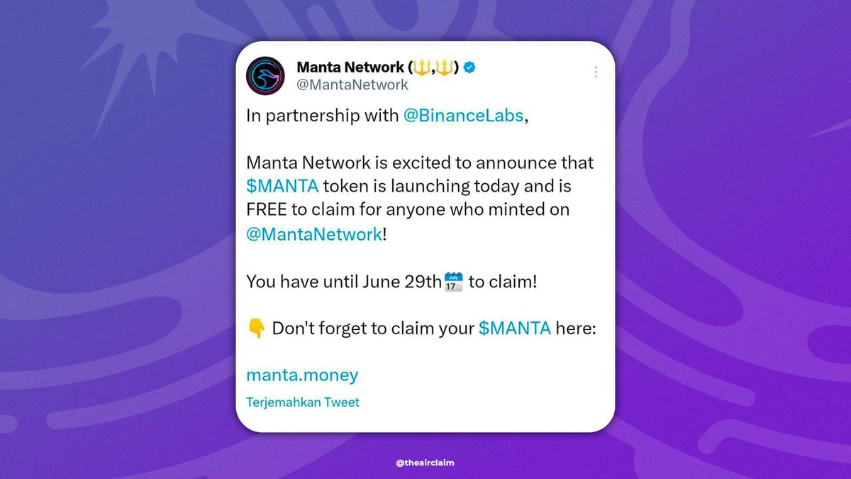Не переходите ни по каким ссылкам в их твиттере, так как они с большой долей вероятности могут быть фишинговыми! Какие конкретные действия нужны для получения AirDrop? Все необходимые шаги и актуальные рекомендации мы регулярно публикуем в нашем Telegram-канале 🚀 #взлом#manta#airclaim#airdrop#retrodrop#crypto