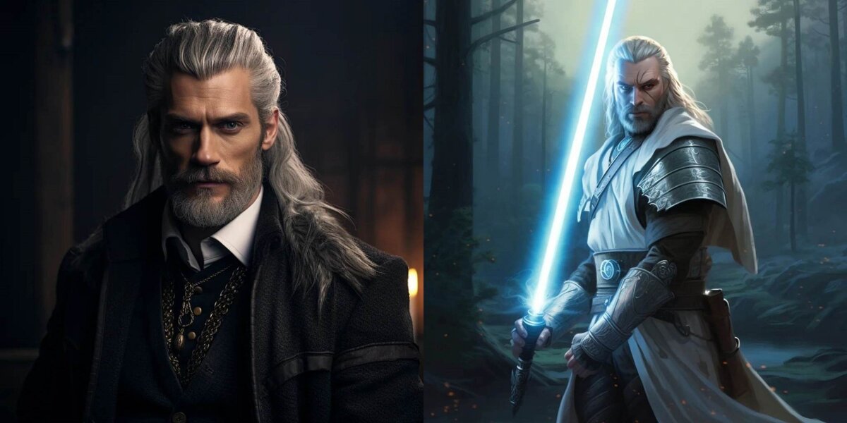 Нейросеть Midjourney представила охотника на монстров в виде джедая, магистра магии из «Гарри Поттера», Суперменом и персонажем аниме «Наруто». Геральт везде получился разным — сексуальным, милым, устрашающим.