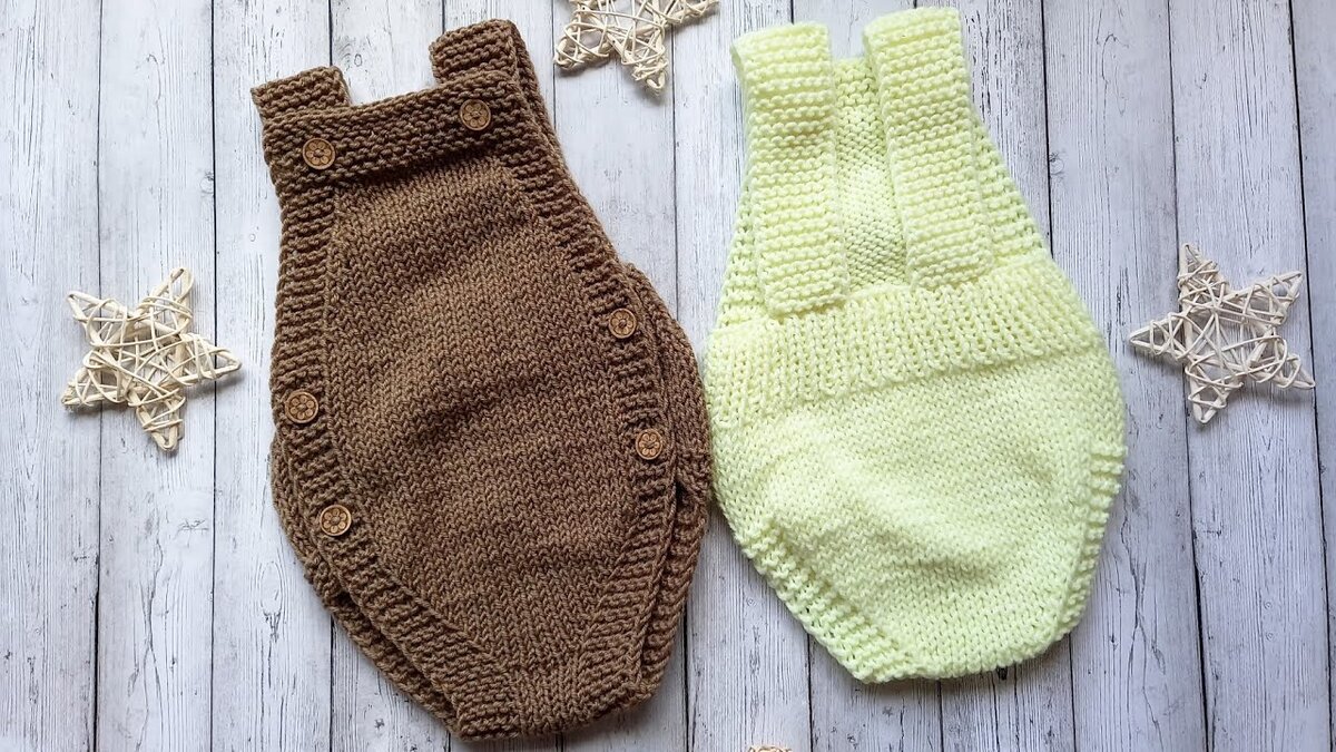 Ромпер спицами. 0-3/3-6/6-9 Набираем 53/57/61 петлю. Вяжем 10 рядов резинки 1 на 1. 16/18/20 рядов вяжем кромочная 4 лиц лицевая гладь( в лицевых лицевыми, в изнаночных изнаночными) 4 лиц кромочная. В 11/13/15 ряду вяжем 13 п в начале и 13 п в конце платочной вязкой. Закрыть по 8 петель с каждой стороны. 37/41/45 убавляем до 15 п. 8/10/12 рядов без изменений. Прибавляем до 31/33/35 п. Вяжем 26/28/30 рядов равномерно распределяя 2 отверстия для пуговиц. Делаем убавки в каждом втором лицевом ряду. До 19/21/23 п. 9 рядов платочной вязки в 6 отверстия для пуговиц.
